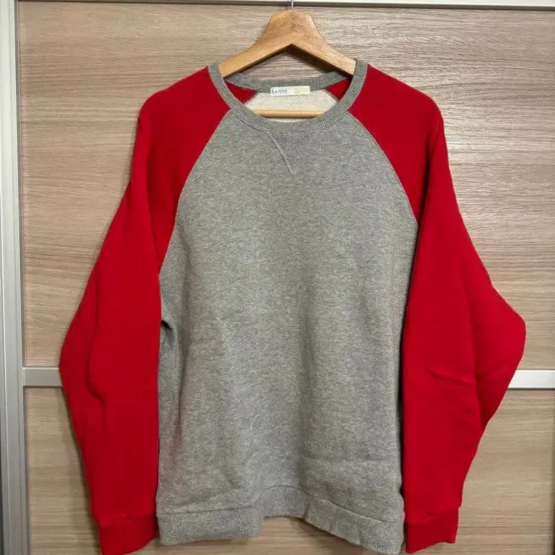 SANSE 그레이/레드 래글런 슬리브 트레이닝복