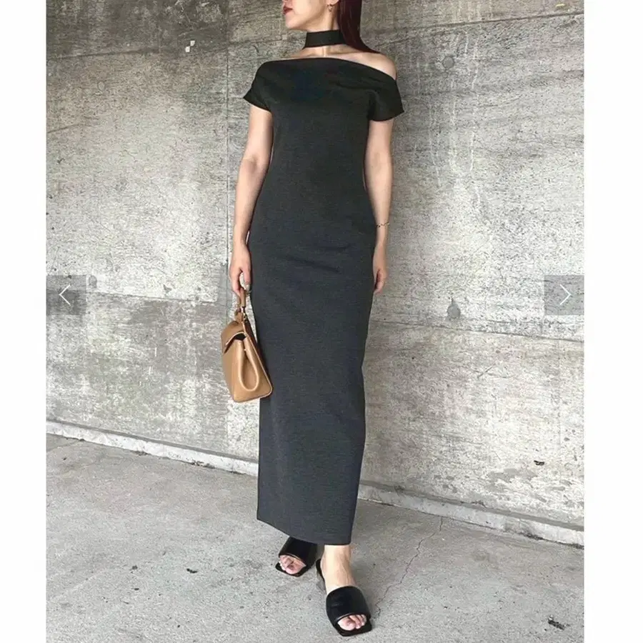 허리를 쉐이프시킨 슬림 실루엣의 심플한 원피스와