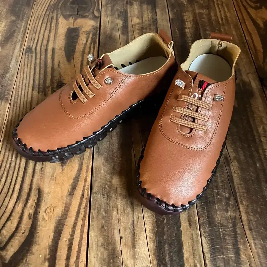 새상품 캐주얼 스니커즈 밴딩 스트링 슈즈 사이즈 22.5 브라운
