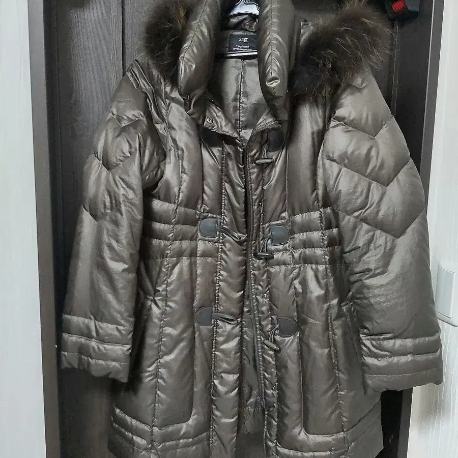 브라운 후드 부착 다운 자켓