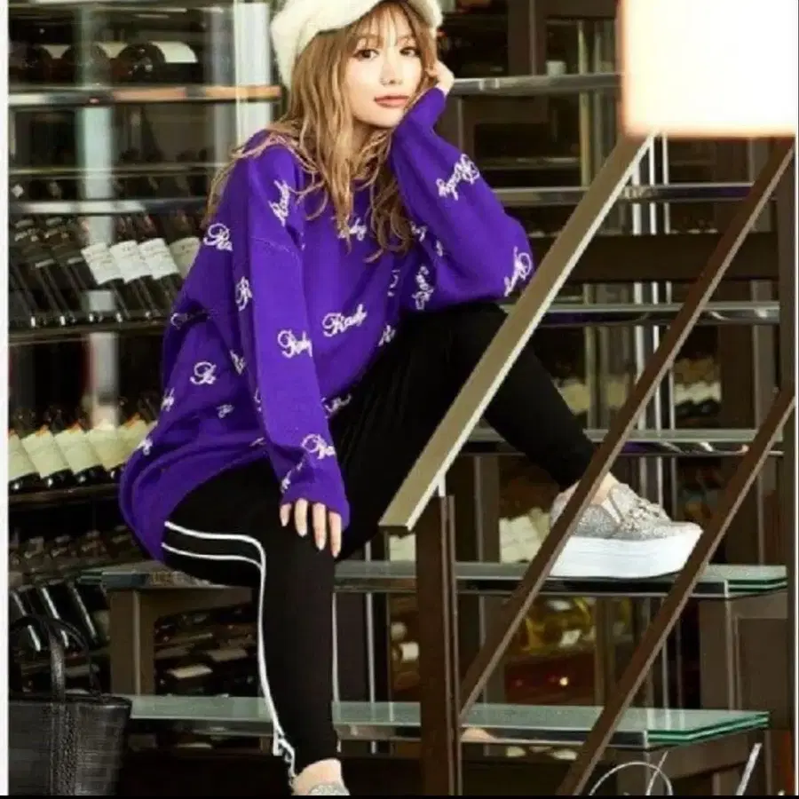 Redy 로고 니트 오버 사이즈 보라색 퍼플 프리 사이즈