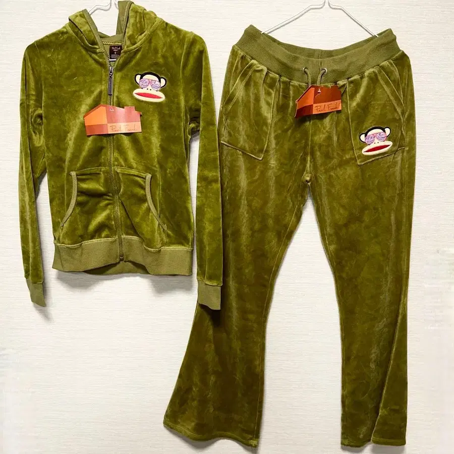 Paul Frank 상하의 셋업 벨로아 자수 카키 올리브 그린