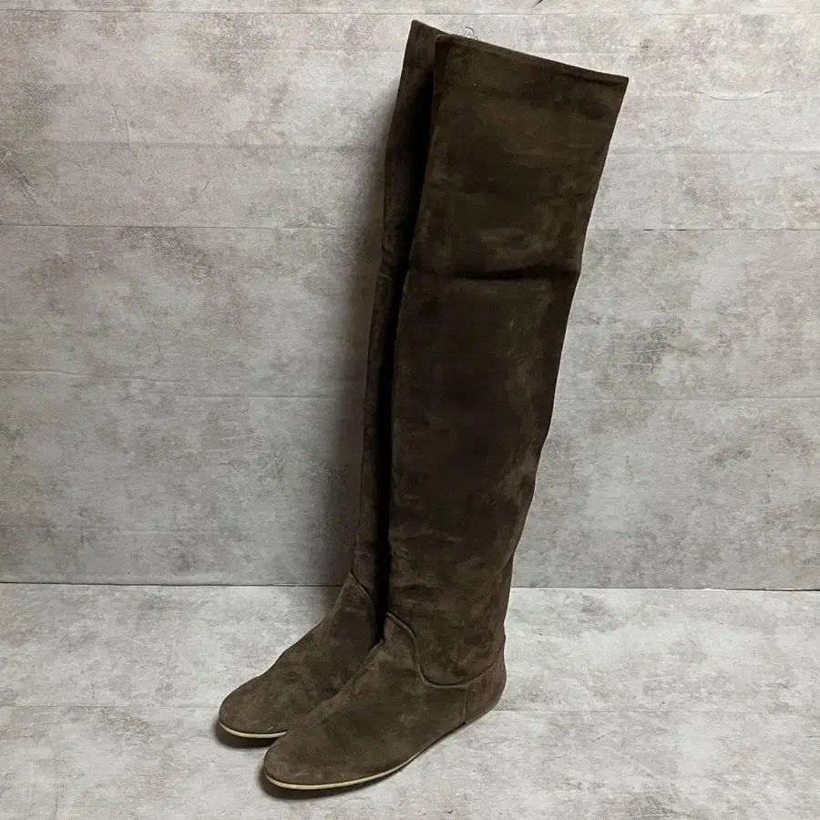 스웨이드 롱 부츠 S 백 지퍼 니하이 부츠