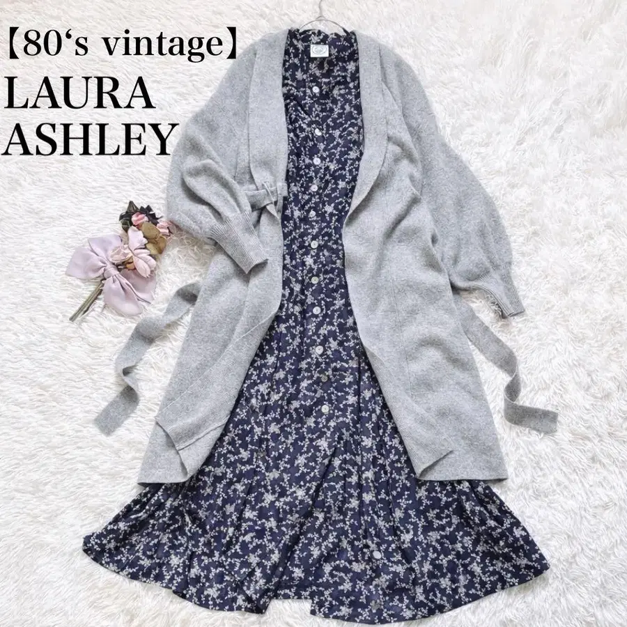 [80s 빈티지] 로라 애슐리 미니 꽃무늬 프론트 오픈 롱 원피스