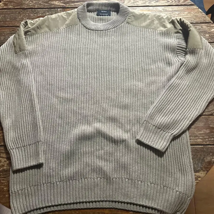 BERSHKA 울 니트 스웨터 어깨 배색 베이지 M 사이즈