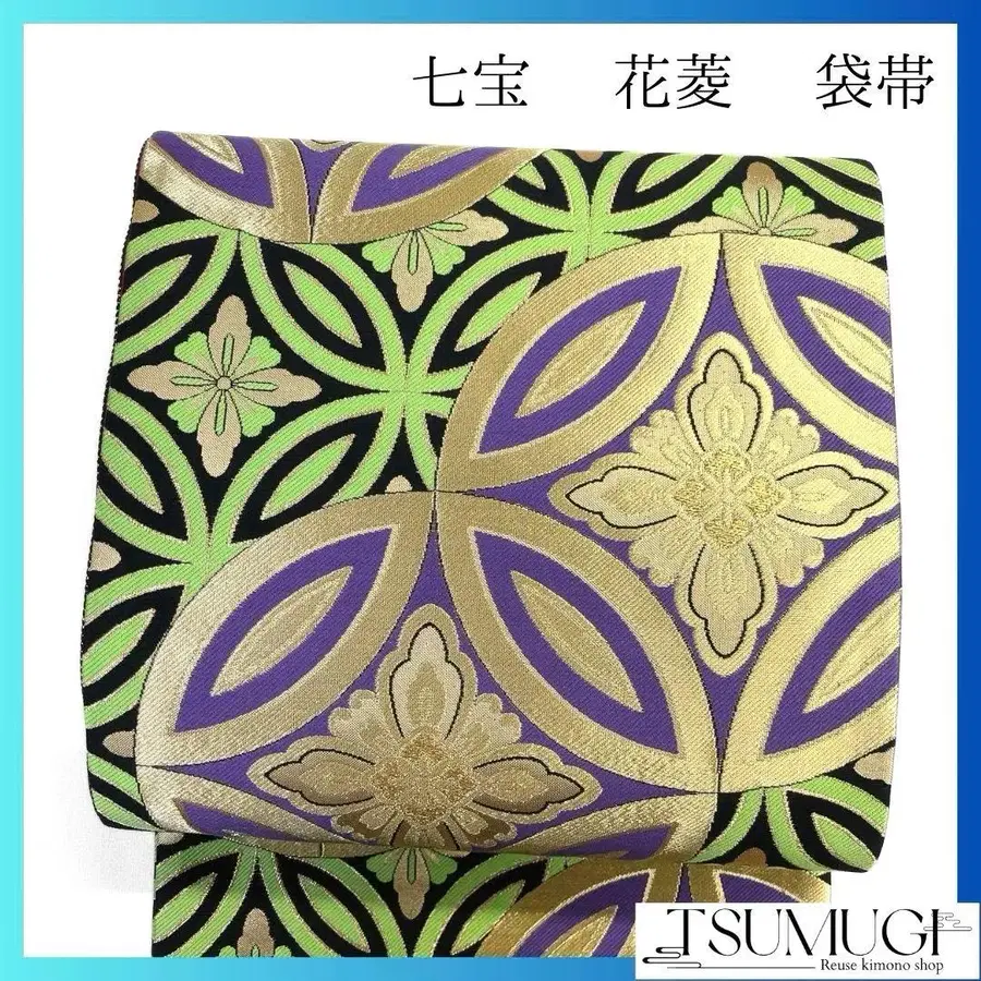 미착용 칠보 하나비시 금실 후쿠로 오비 후리소데 오비 기모노 041a p