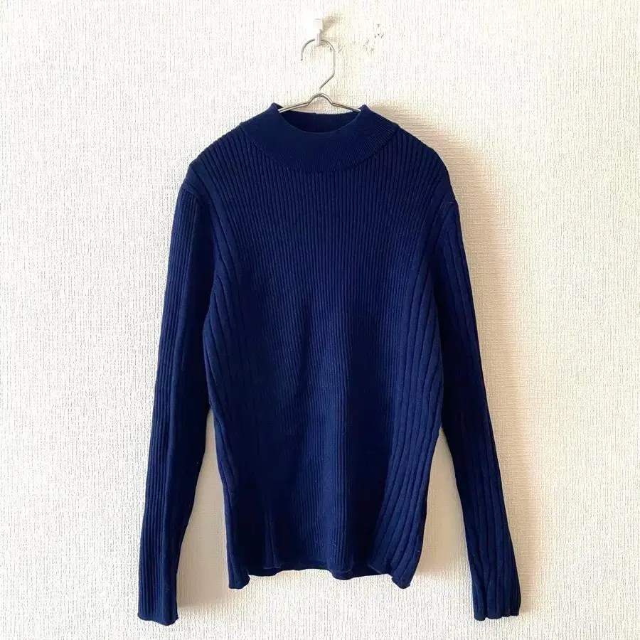 [앙코키누] 니트 라메 장식 버튼 울 혼방 모크넥 긴팔 무지 M