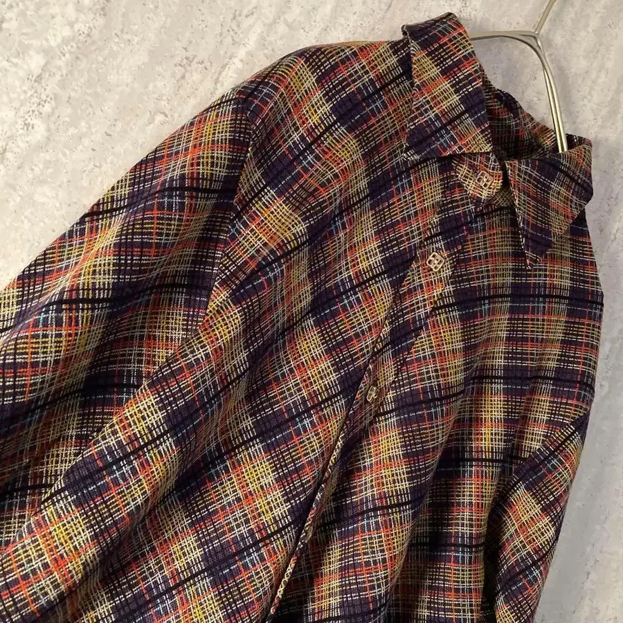 빈티지 블라우스 체크 올 패턴 쇼와 레트로 걸리시 브라운