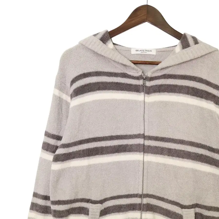 후드 부착 지퍼 후드티와 하프 팬츠 세트. 복슬복슬한 소재로 촉감 최고. 차분한 보더 무늬로 남성도 입기 쉬운 디자인입니다.