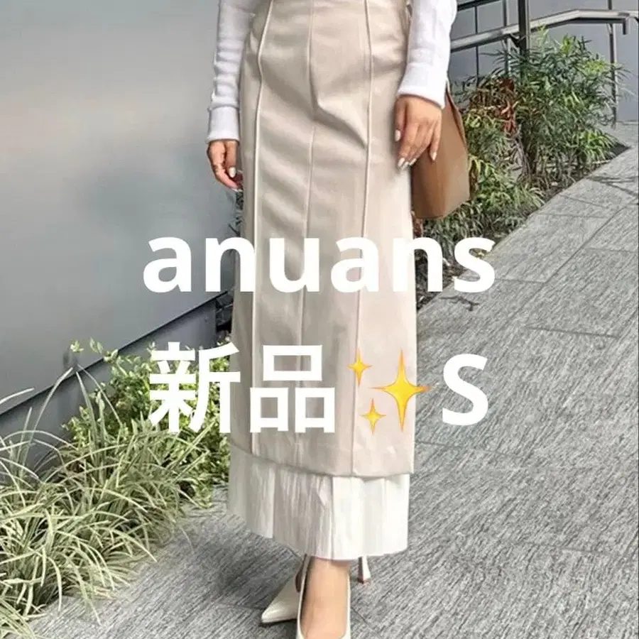 택 포함 새상품 anuans 레이어드 아지메 슬릿 스커트 S 베이지