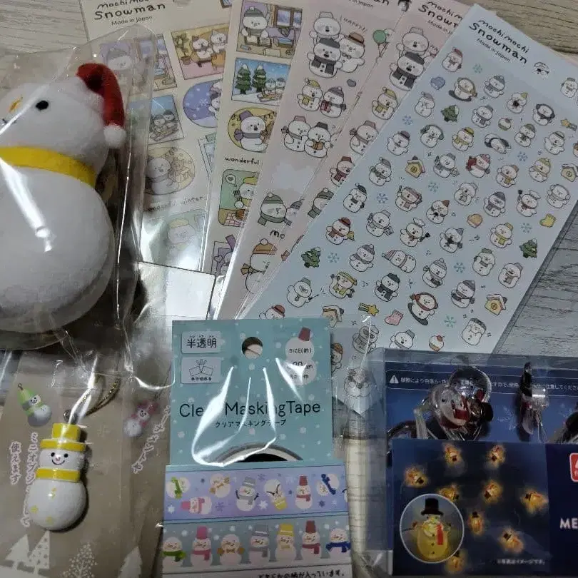 스노우맨 키링 스티커 마스킹 테이프 가랜드 라이트 세트