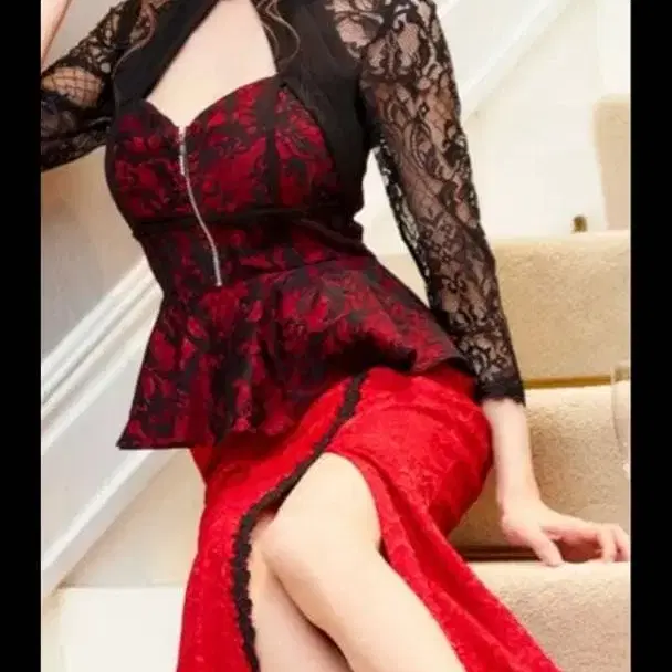 SOBURE 레이스 페플럼 롱 드레스 빨검