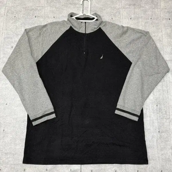 자동 번역되었어요. 원문보기90s NAUTICA 하프 지퍼 맨투맨 트레이닝복 속기모 노티카 90년대 vintage 바이컬러 래글런 슬리브 멜란지 바디 YL3199 자수 로고 원포인트 USA 기획 미국 기획 빈티지 빈티지 빅 실루엣 빅 사이즈 XL 빅 루즈 리브 라인 블랙 x 그레이 얇고 부드러우면서도 탄탄한 고급 소재