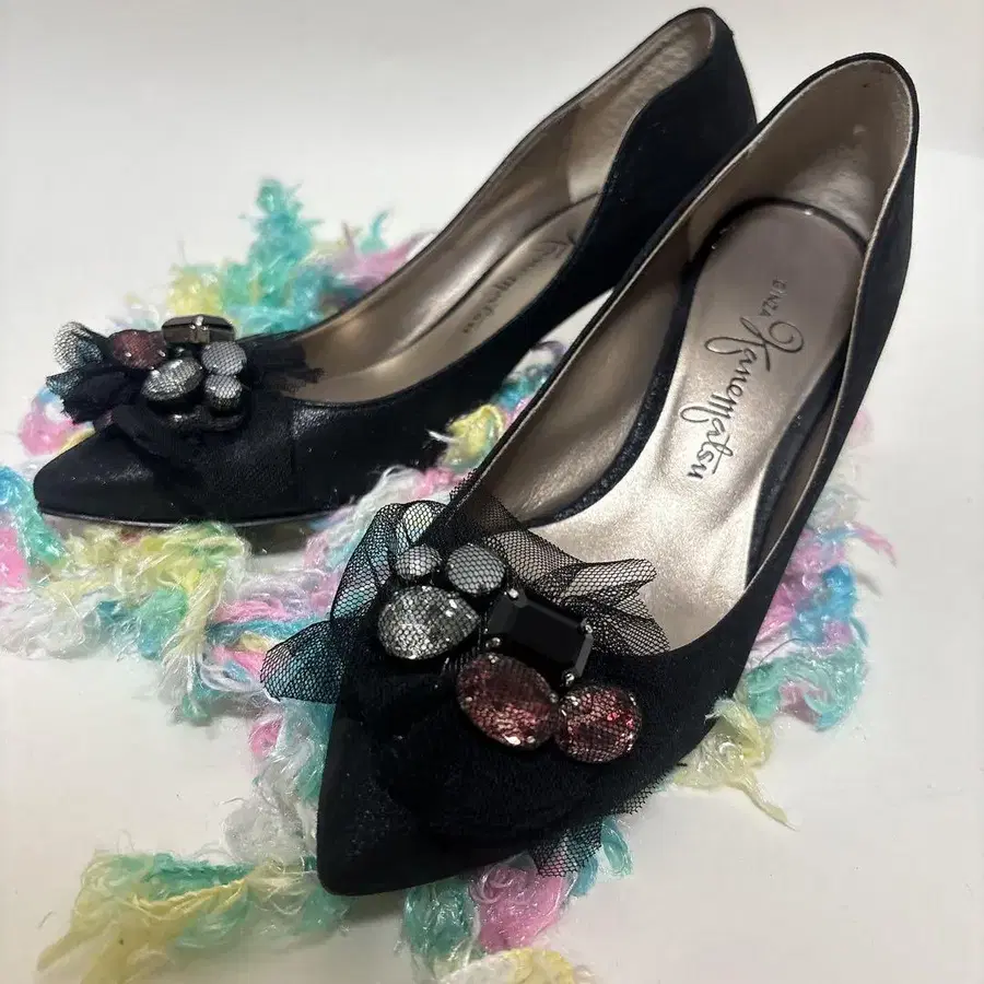 [ 긴자 카네마츠 ] 새상품급 비쥬 장식 블랙 펌프스 포멀 스틸레토