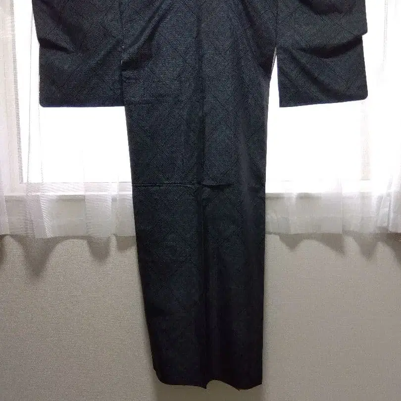 오시마 명주 마름모꼴 무늬 블랙 기모노