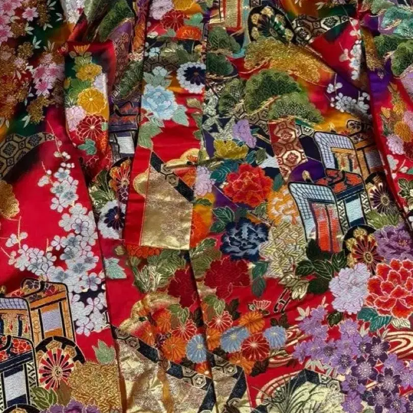 럭셔리한 빨간색 바탕의 후리소데 기모노