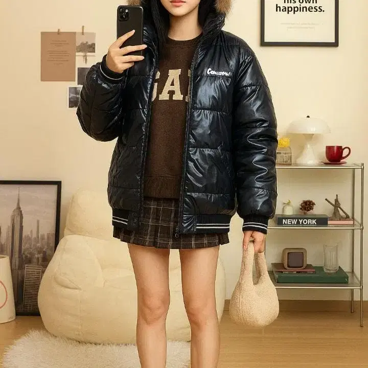 시크 스타일 y2k 집업 후드 퍼 자켓 충전솜 다운 자켓 블랙