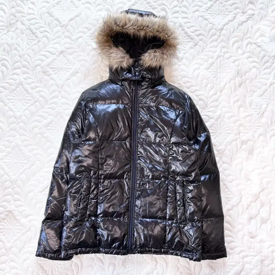 시크 스타일 y2k 후드 퍼 다운 자켓 퀼팅 광택감 블랙