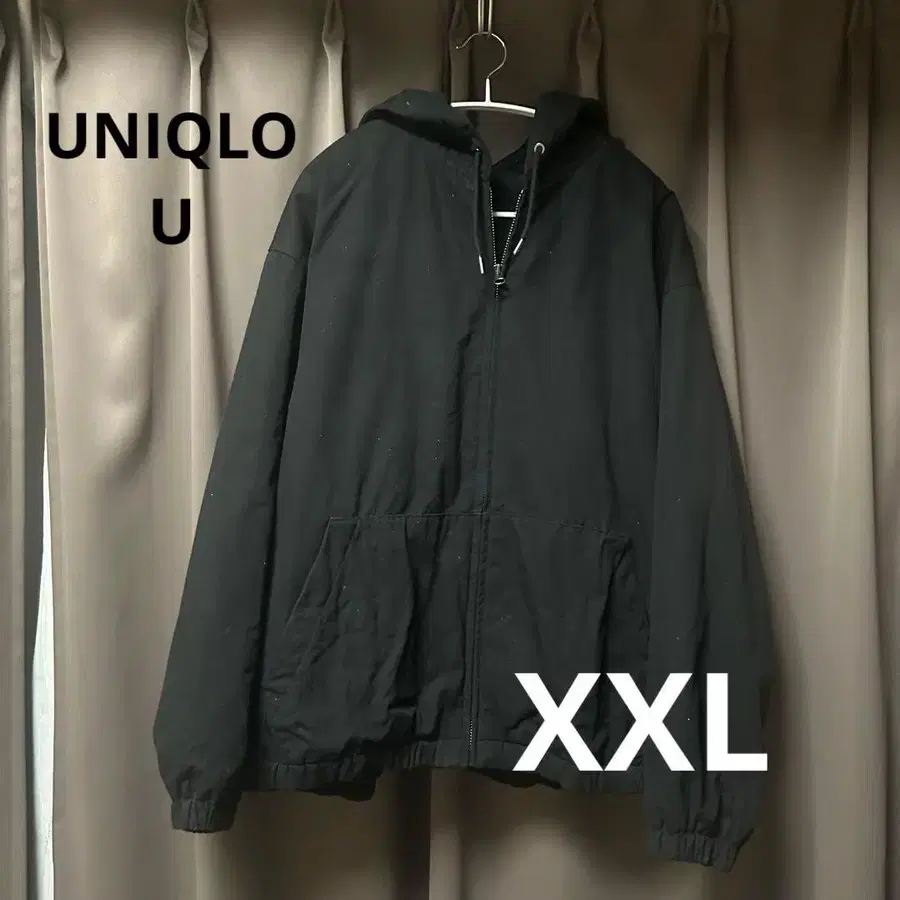 UNIQLO U 블랙 후드 부착 집업 자켓 남성용 XXL