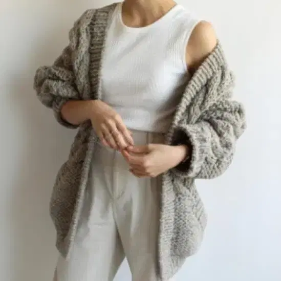 새상품급 투데이풀 케이블 핸드 니트 가디건 베이지 36