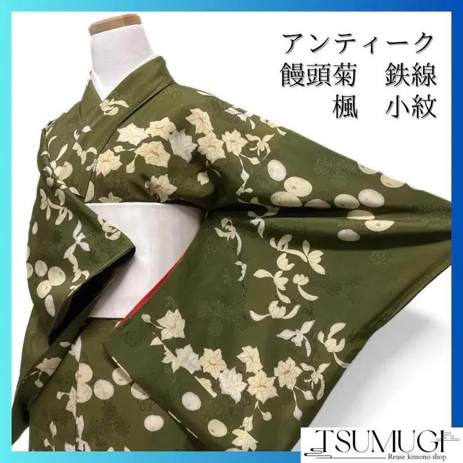 코몬 앤티크 만두국 철선 단풍 도라지 그린 기모노 092w d