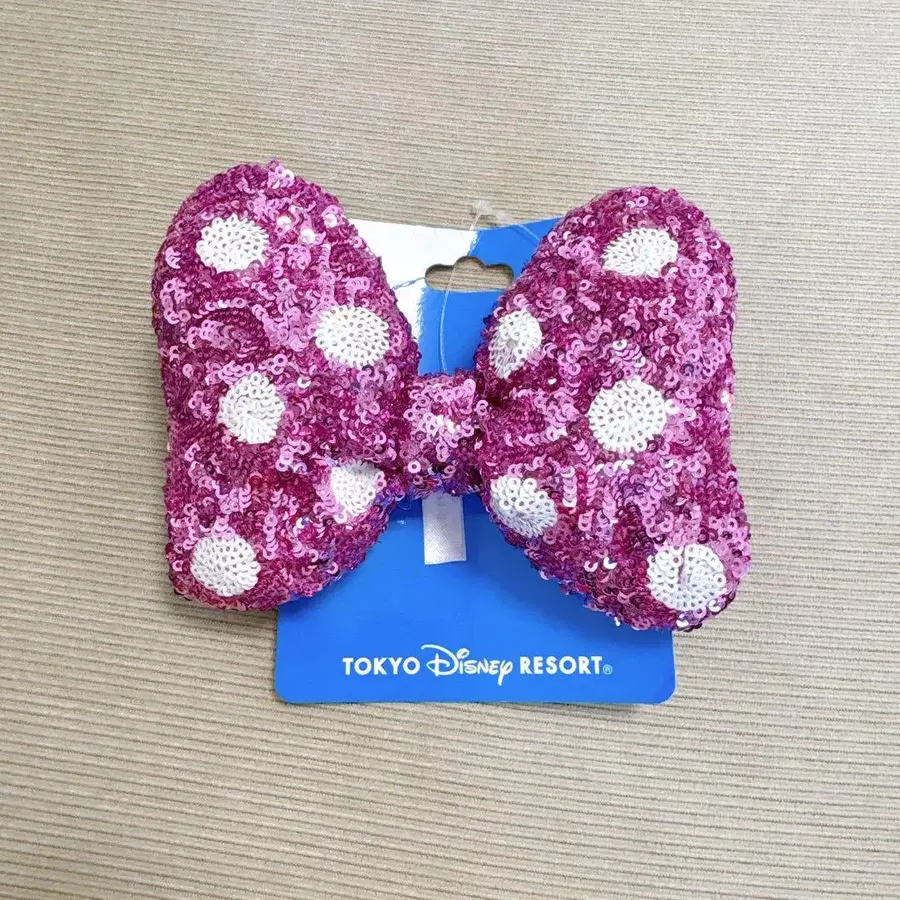 미사용 새상품 미니 스팽글 리본 머리끈 핑크