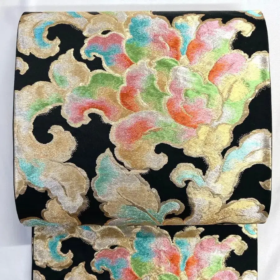 후쿠로 오비 당화 금실 컬러풀 블랙 베이스 기모노 오비 020k