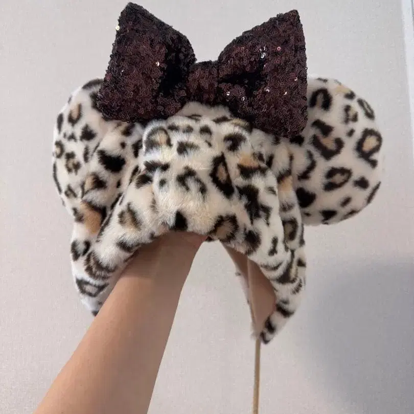 디즈니 리조트 레오파드 무늬 귀도리 모자