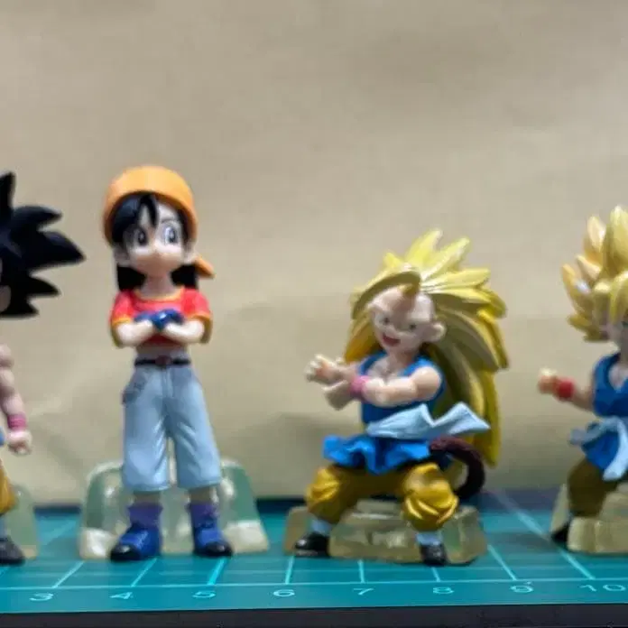 드래곤볼 피규어 4개 세트, 약 5cm 플라스틱제. - 캐릭터: 손오공 - 캐릭터: 치치 - 캐릭터: 초사이어인 오천크스 - 캐릭터: 초사이어인 트렁크 - 소재: 플라스틱 - 사이즈: 약 5cm - 세트 내용: 피규어 4개 세트 장식했던 관계로 얼룩과 흠집이 있습니다. 받침대가 노랗게 변색되었습니다. 부품을 분리하여 발송합니다. 오랜 시간이 지났으므로 이해하신 후 구매 부탁드립니다. 방문해 주셔서 감사합니다.