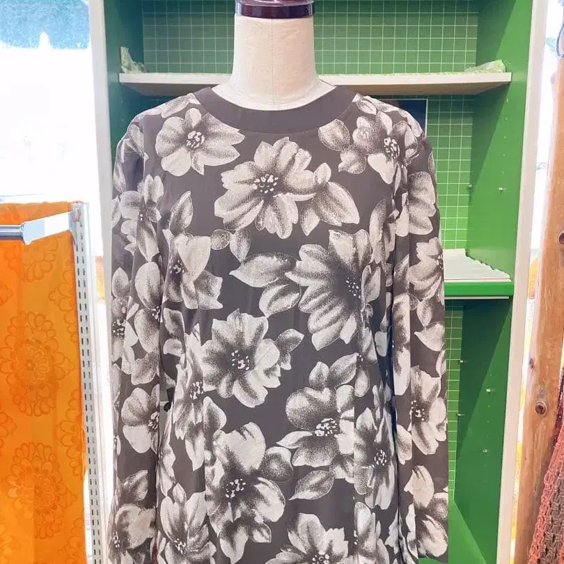 빈티지 브라운 꽃무늬 원피스 구제 의류 쇼와 레트로 1970s