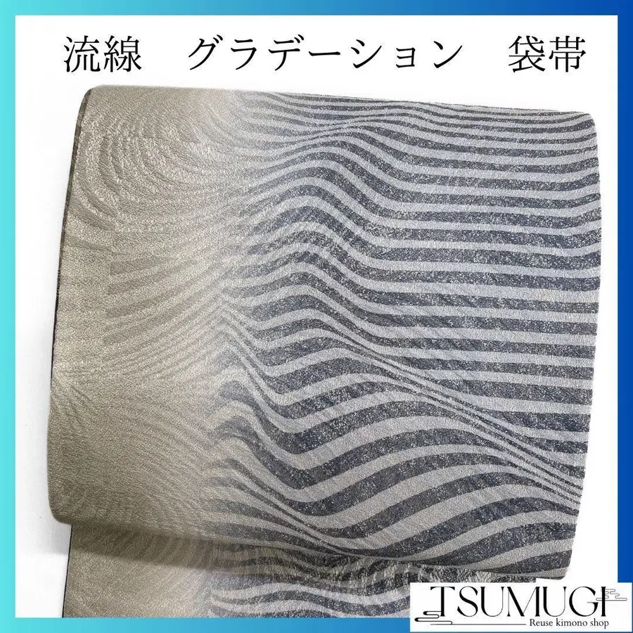 미착용, 그라데이션과 유선형이 짜여진 후쿠로 오비입니다.