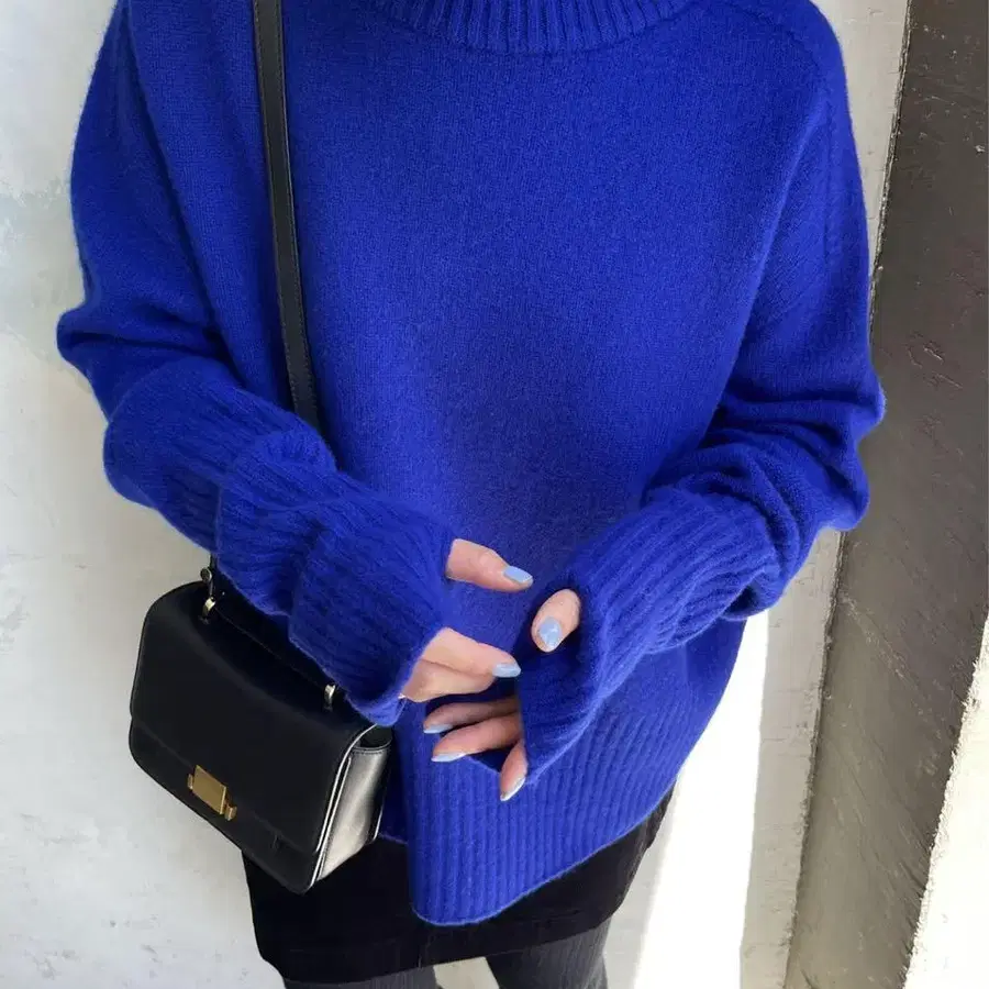 • ZARA 블루 판초풍 하이넥 니트 긴팔