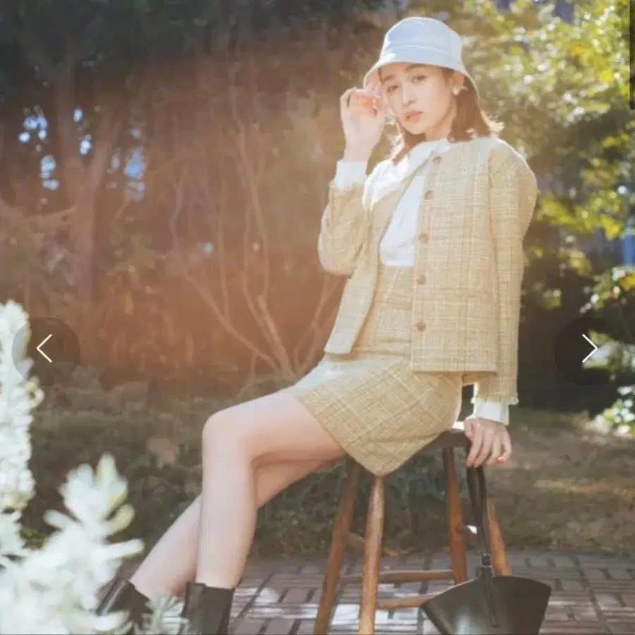 LILY BROWN 노카라 트위드 자켓 스커트 셋업 M