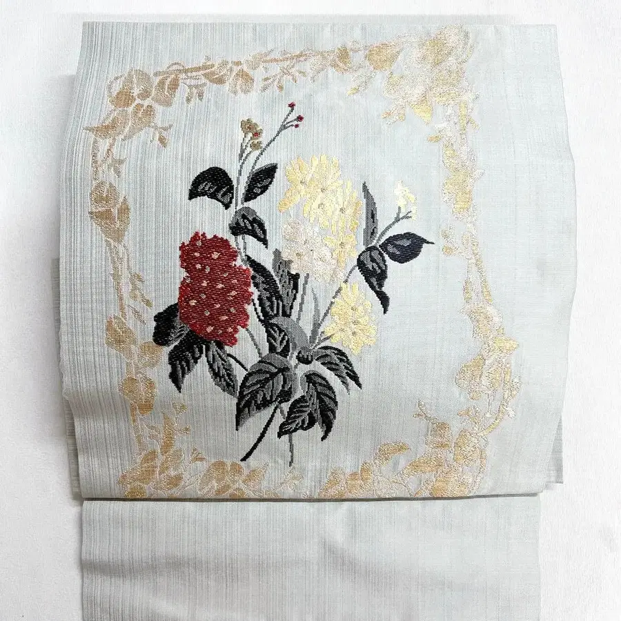 • 후쿠로 오비 꽃무늬 블랙 베이스 실버 자수