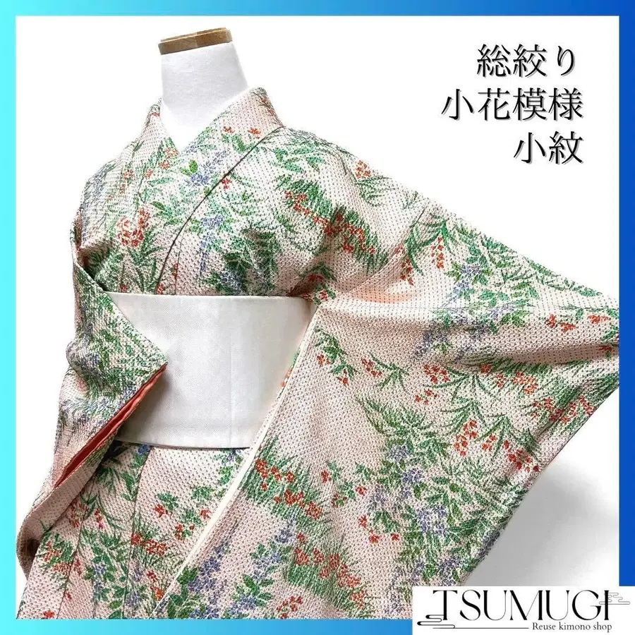 코몬 총시보리 작은 꽃 꽃 무늬 핑크 기모노 124a d