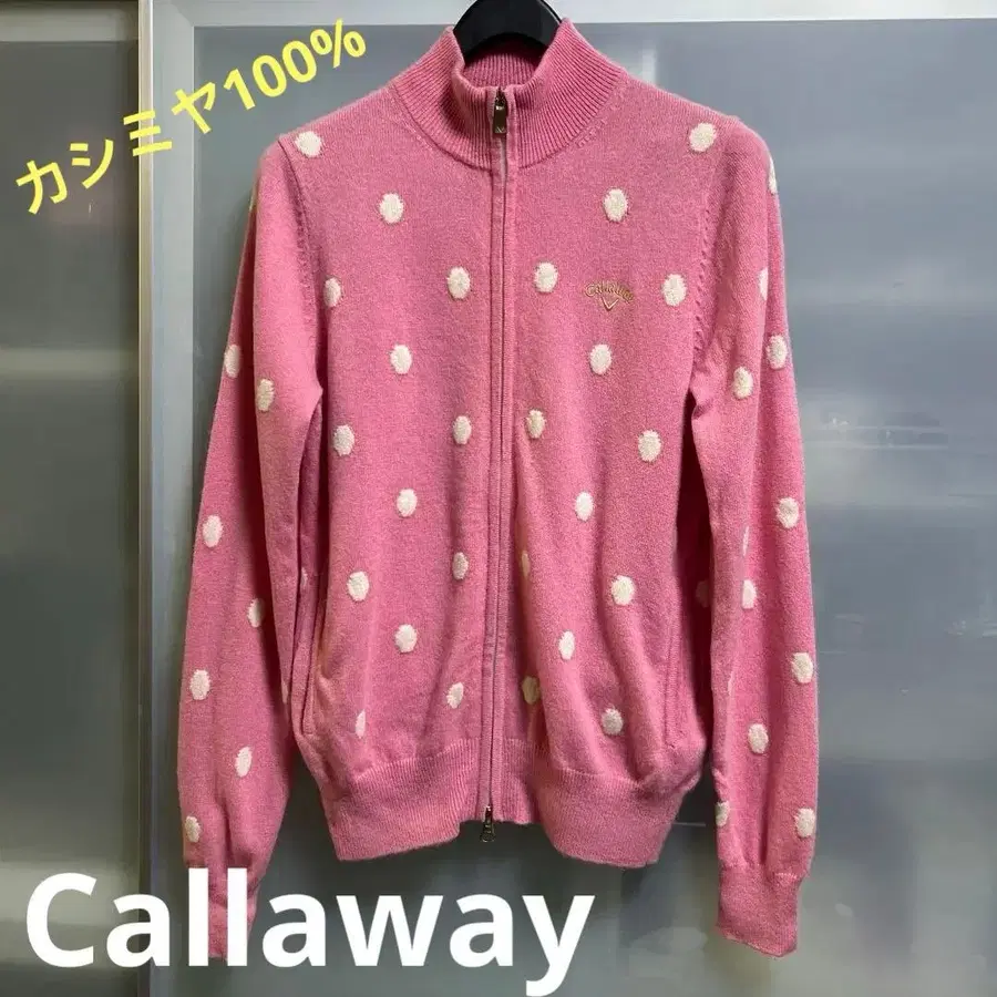 캘러웨이 핑크 도트 무늬 캐시미어 100% 스웨터 풀 집업