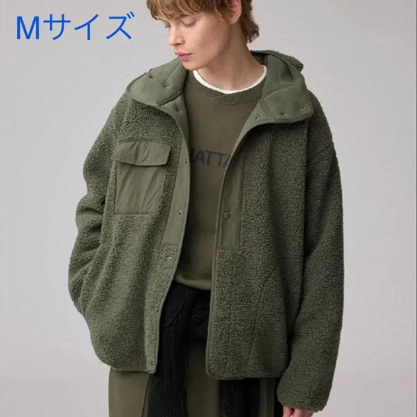 GU 엔지니어드 가먼츠 보아 플리스 스냅 후드티 M 올리브 새상품
