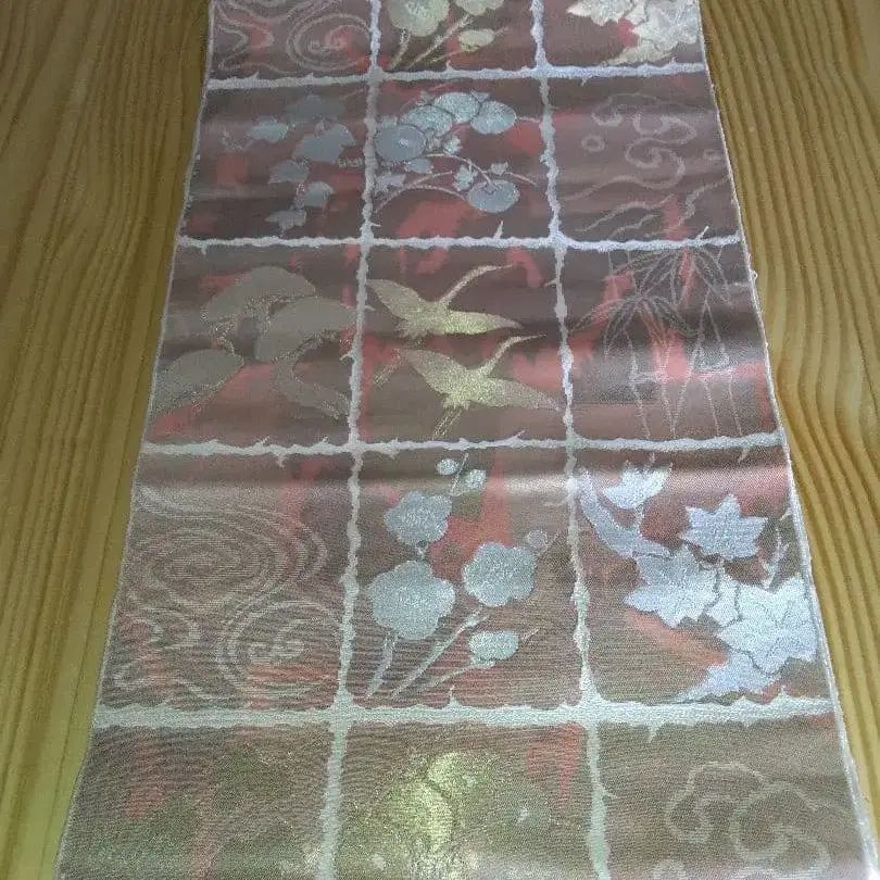아름다운 골드 컬러의 새와 꽃 무늬 후쿠로 오비