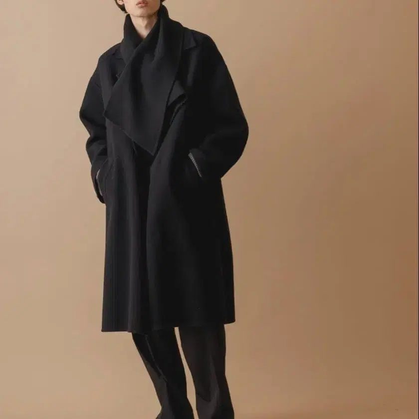 캐시미어 블렌드 울 리버 세미 더블 코트 블랙
