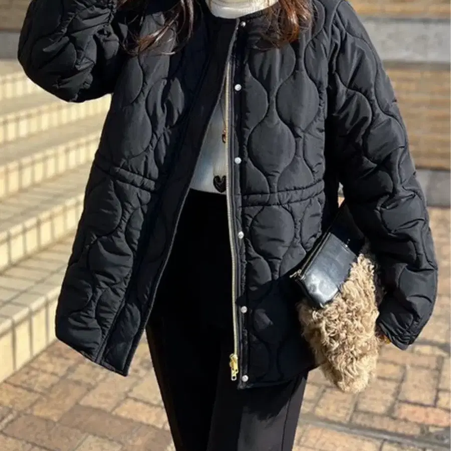 EmmaTaylor 퀼팅 노카라 하프 코트