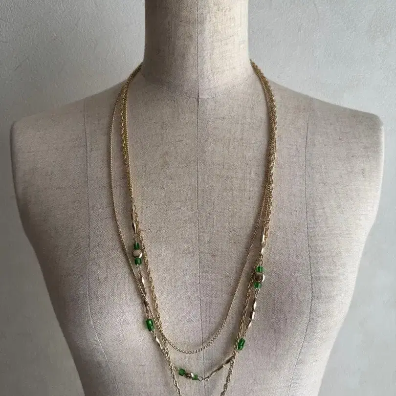 빈티지 3연 골드 그린 목걸이 쇼와 레트로