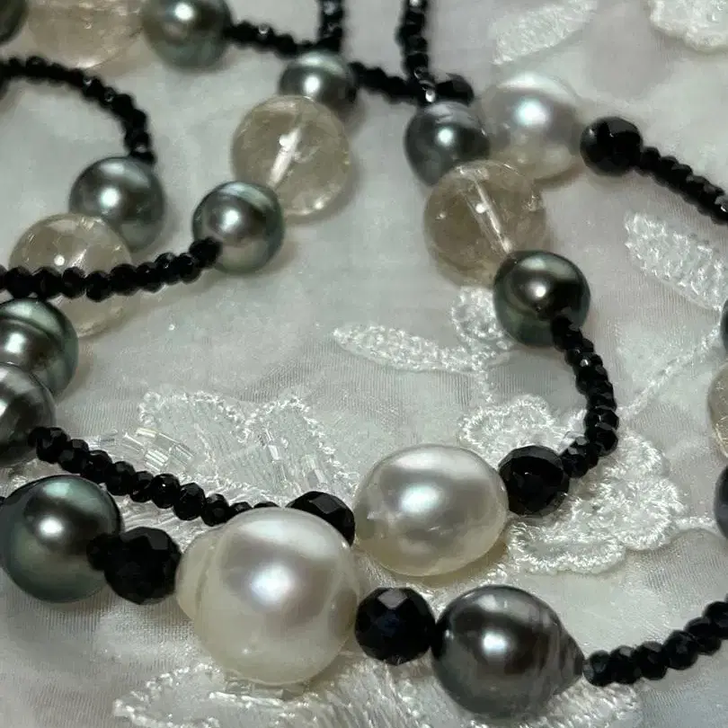 남양 진주와 루틸 쿼츠의 멋진 롱 목걸이