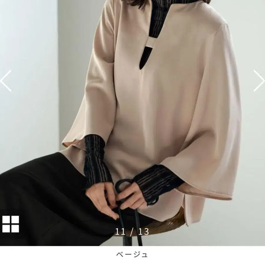 스타일 델리 STYLE DELI 사라사라 트윌 프론트 바 블라우스 베이지