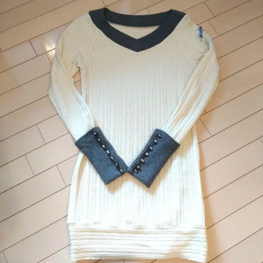 PRIDE 프라이드 아이보리와 그레이의 V넥 니트