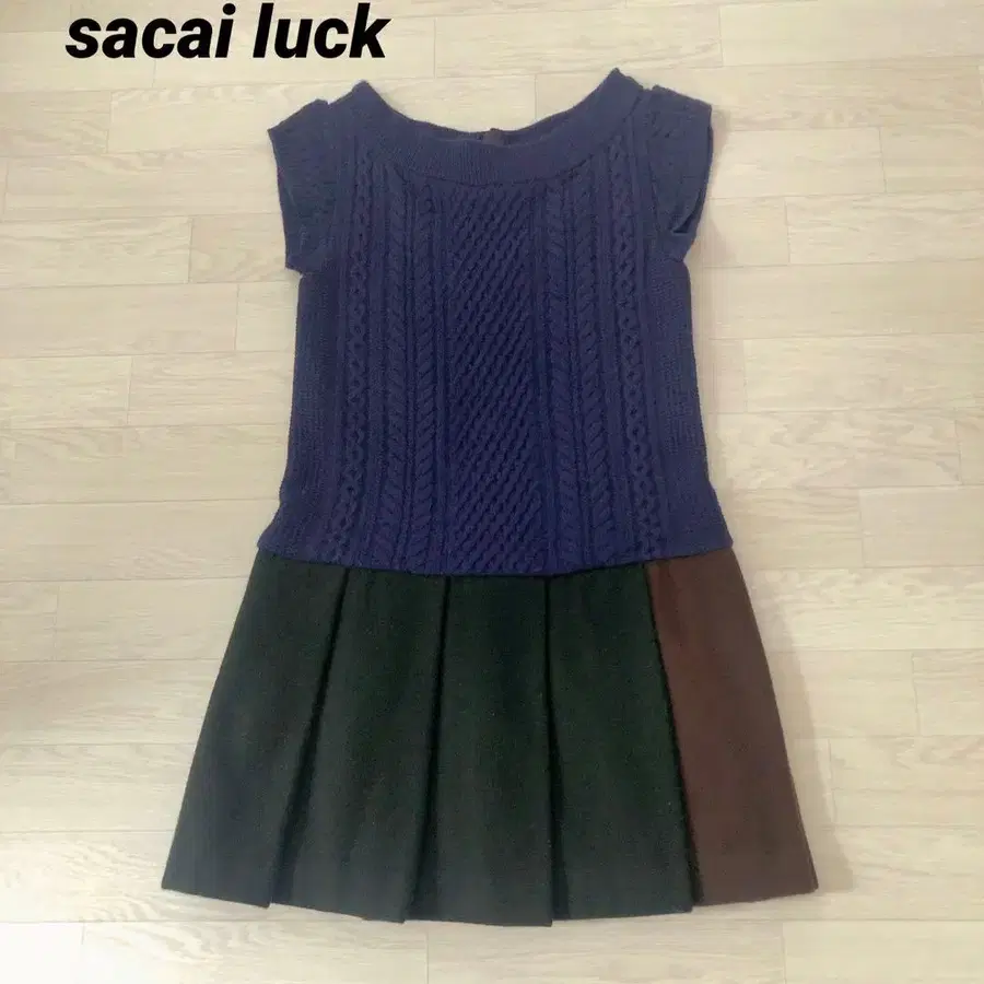 케이블 짜임 니트 부분. 스커트는 플란넬 소재의 두꺼운 원단의 플리츠 스타일입니다.