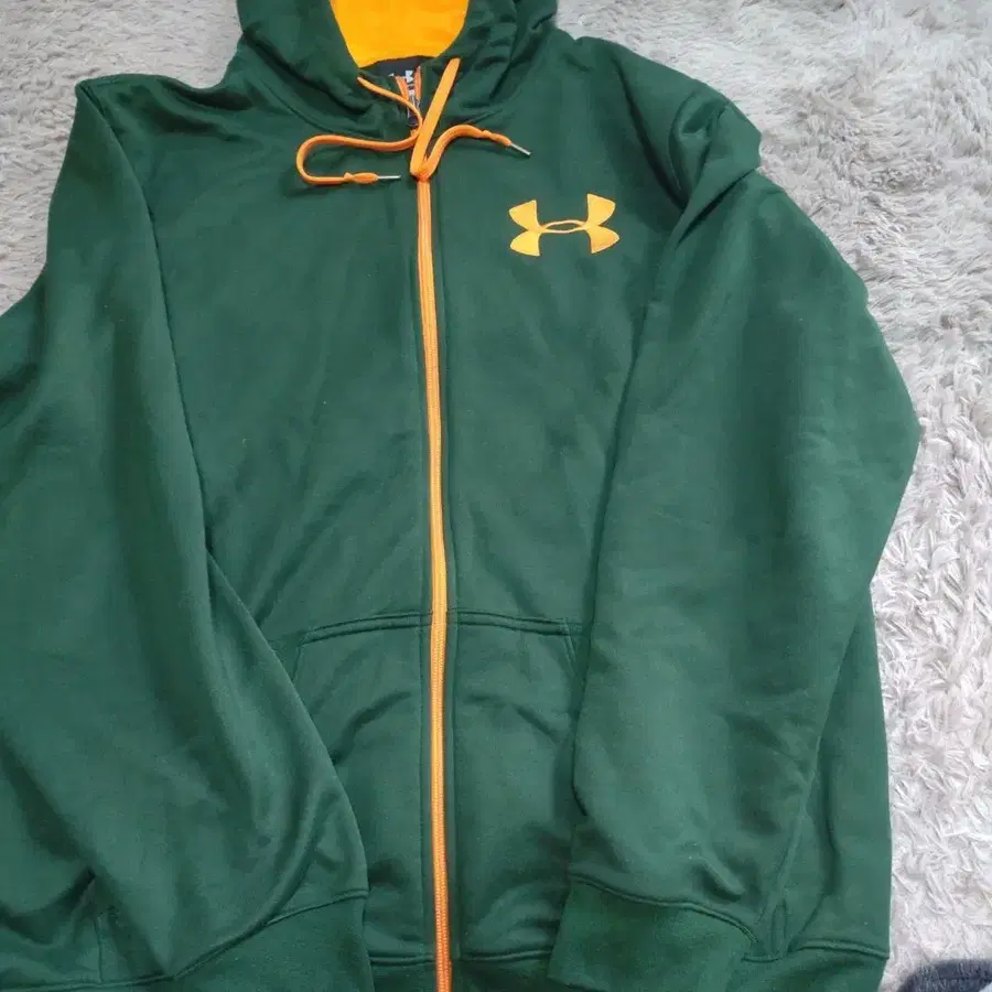 언더아머 후드 부착 후드티 그린/오렌지 XL