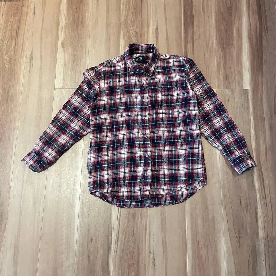 두꺼운 플란넬 셔츠 체크 무늬 빨간색 x 네이비 긴팔 겉옷