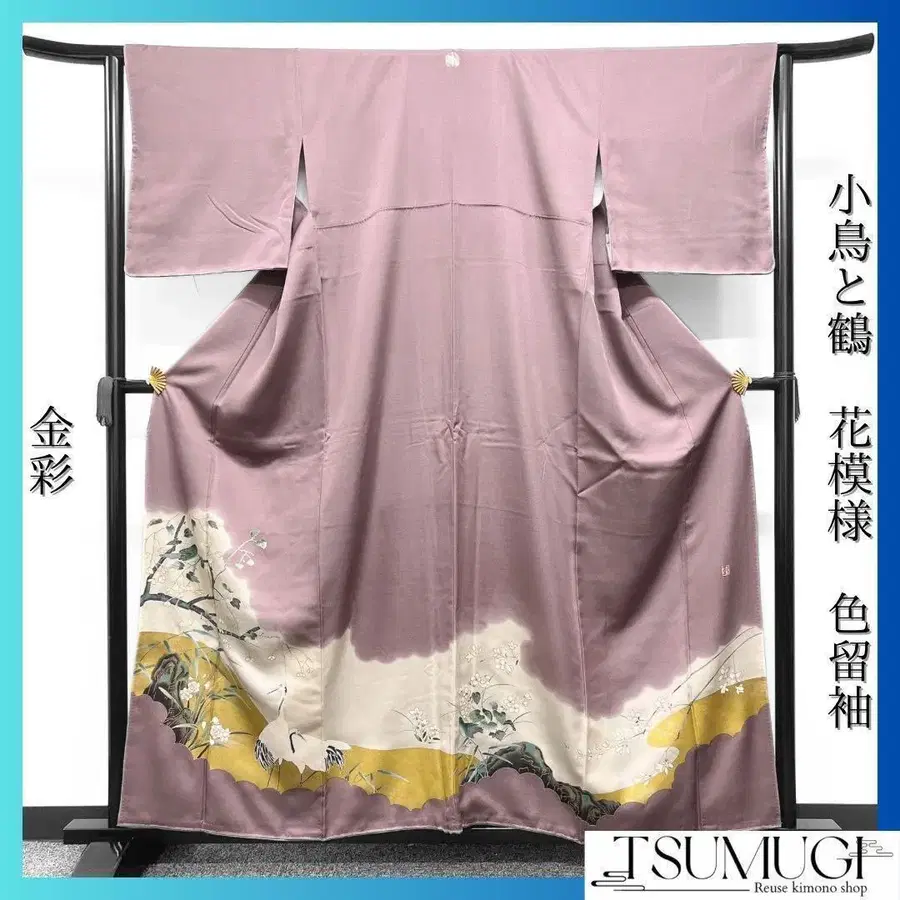 탁한 연보라색 바탕에 금채를 섞어 그린 꽃 무늬에 작은 새와 학 문양이 화려한 한 벌입니다.