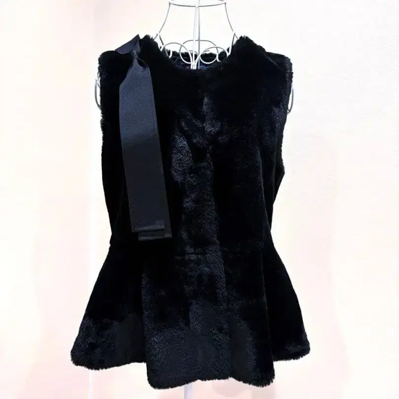 엠즈 그레이시 블랙 퍼 리본 포함 플레어 베스트 38 M