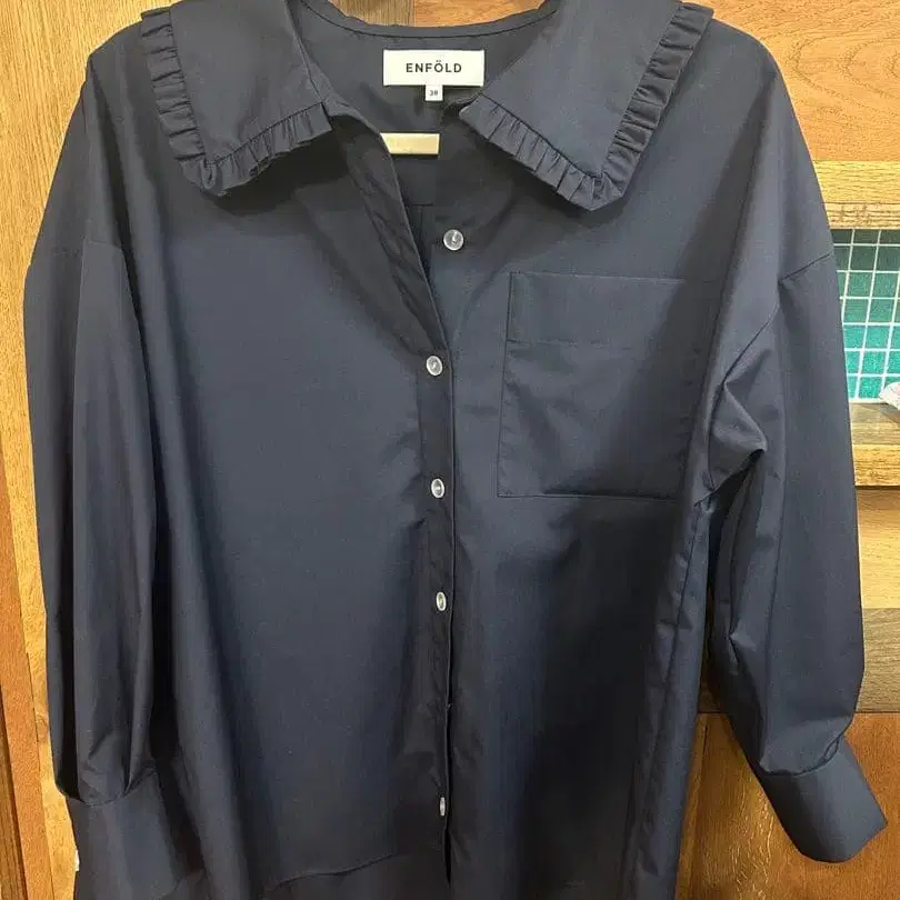 엔폴드 2025AW 네이비 사이즈 38 프릴 블라우스 택 포함